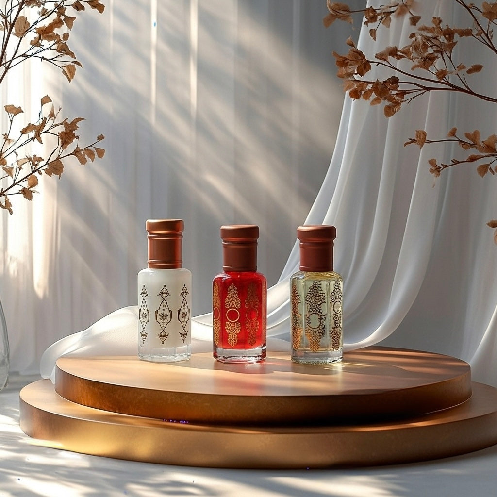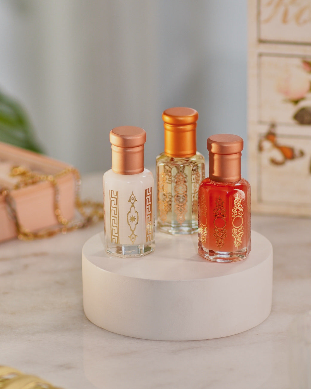 ارتقِ بحضورك اليومي مع باقة مسكات السمو التي تجمع ثلاث عطور زيتية سعودية فاخرة، مُختارة بعناية من أجود الخامات الشرقية.